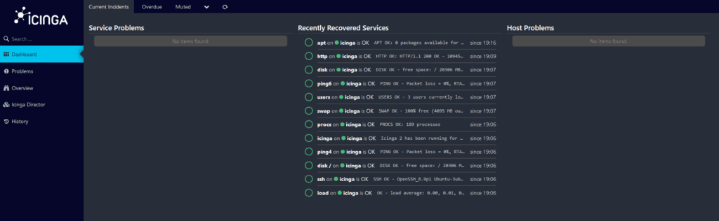 If you have any issues, check the service statuses for the Icinga components and restart. Common issues are related to redis, icinga2 and icinga2db can be intercepted by checking the system log messages also.
