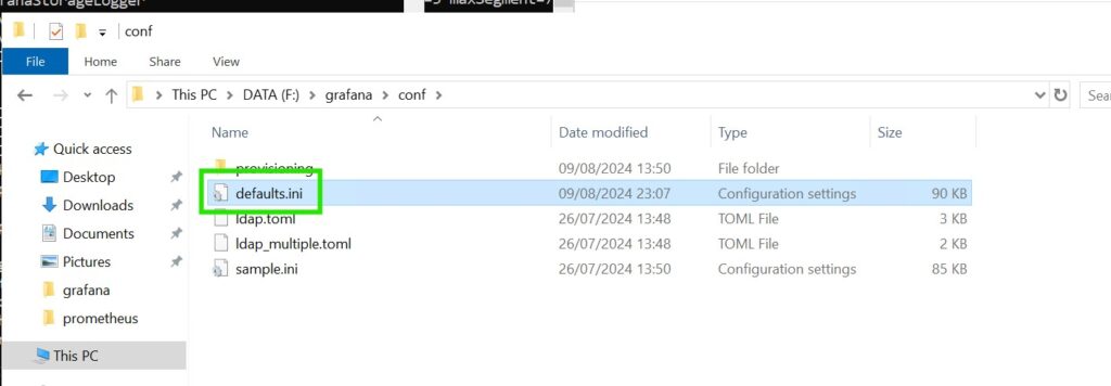 First we need to update the default.ini which is under ../grafana/conf and modify these parameters: