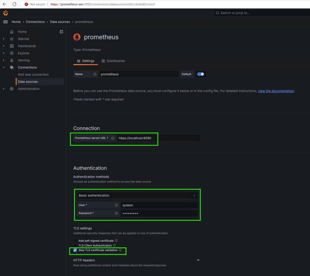 Reconfigure Datasource Prometheus with HTTPS and Basic Authentication
