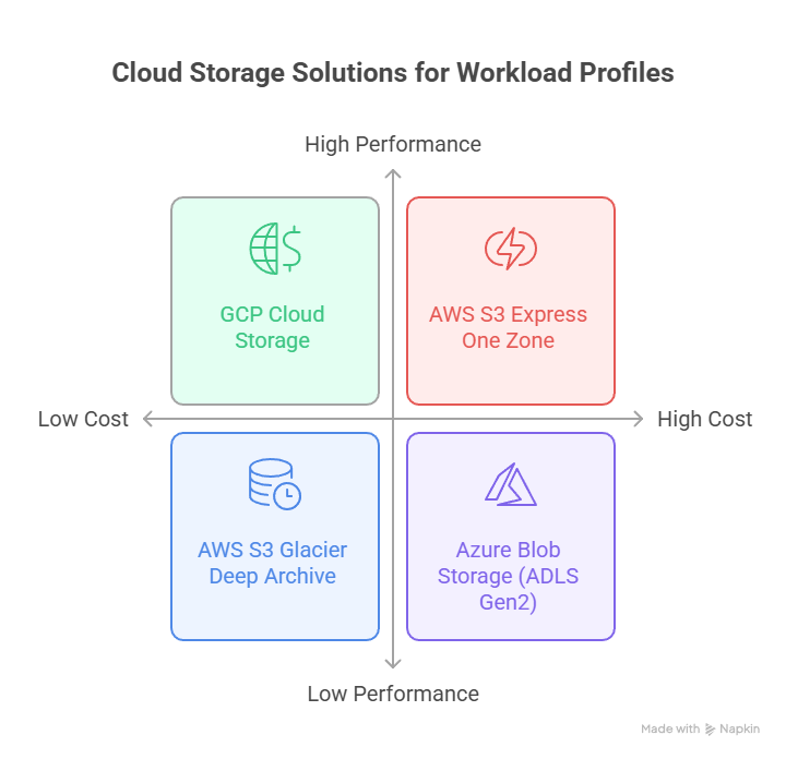 The choice among AWS S3, Azure Blob Storage, and GCP Cloud Storage is a nuanced architectural decision reflecting the specific characteristics of the data pipeline.